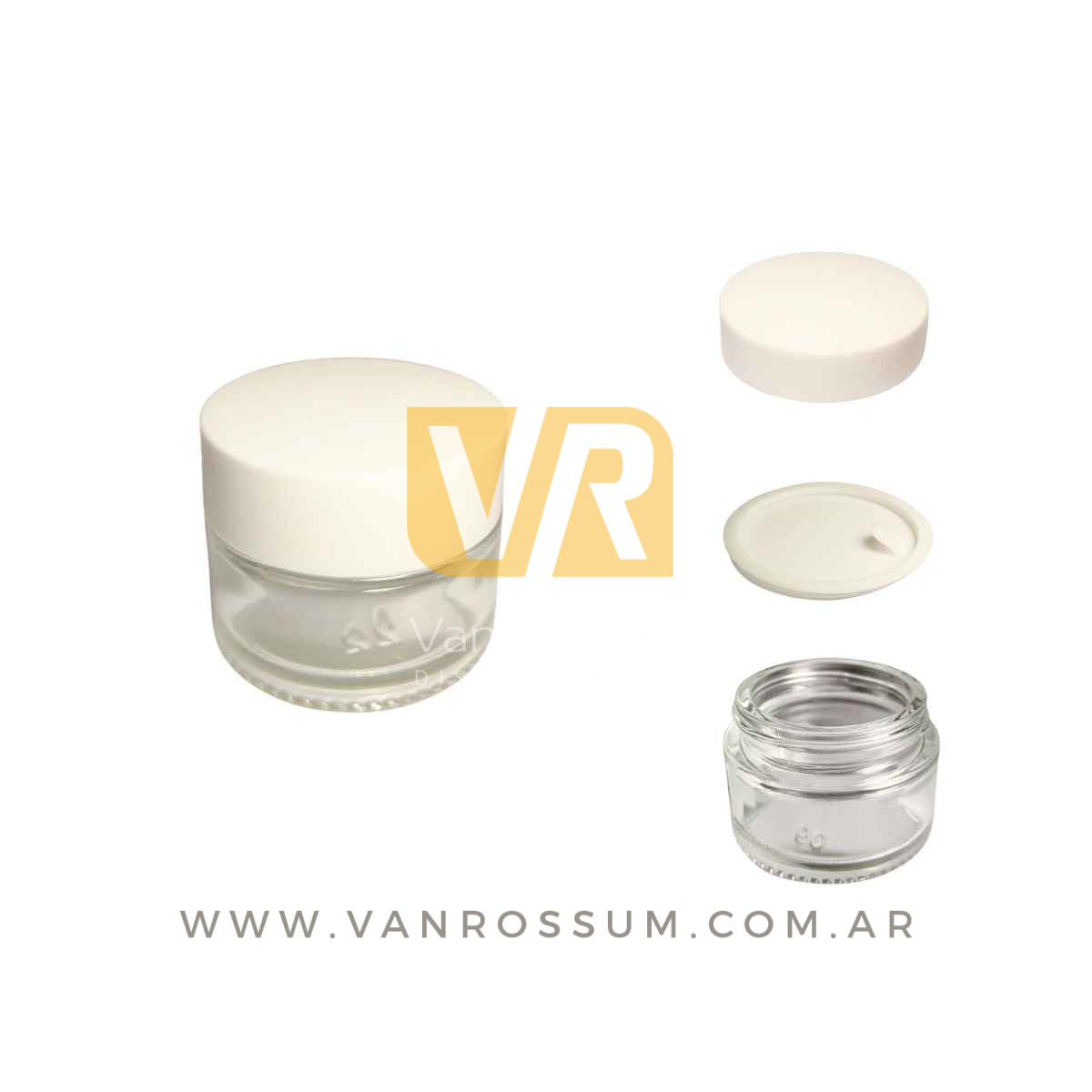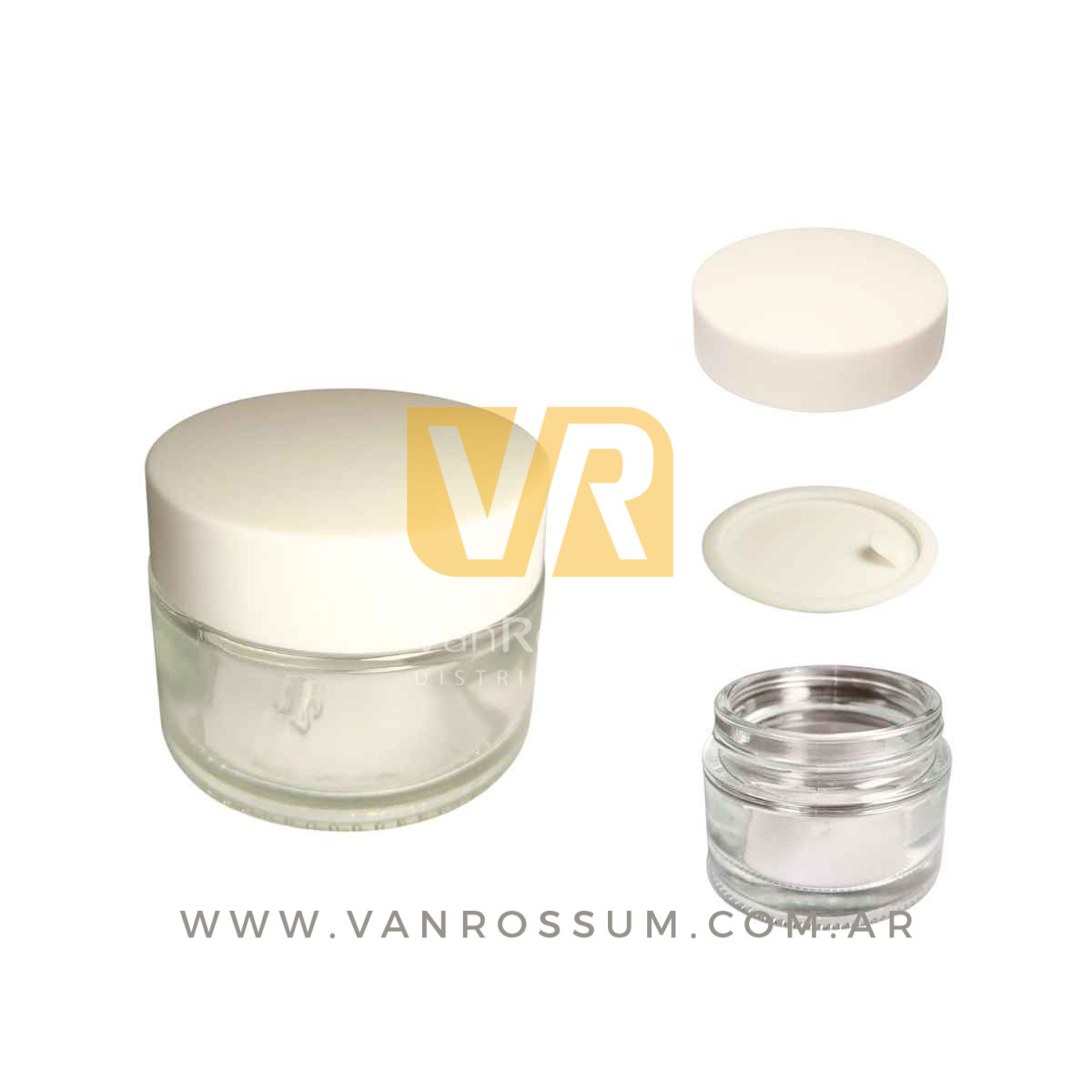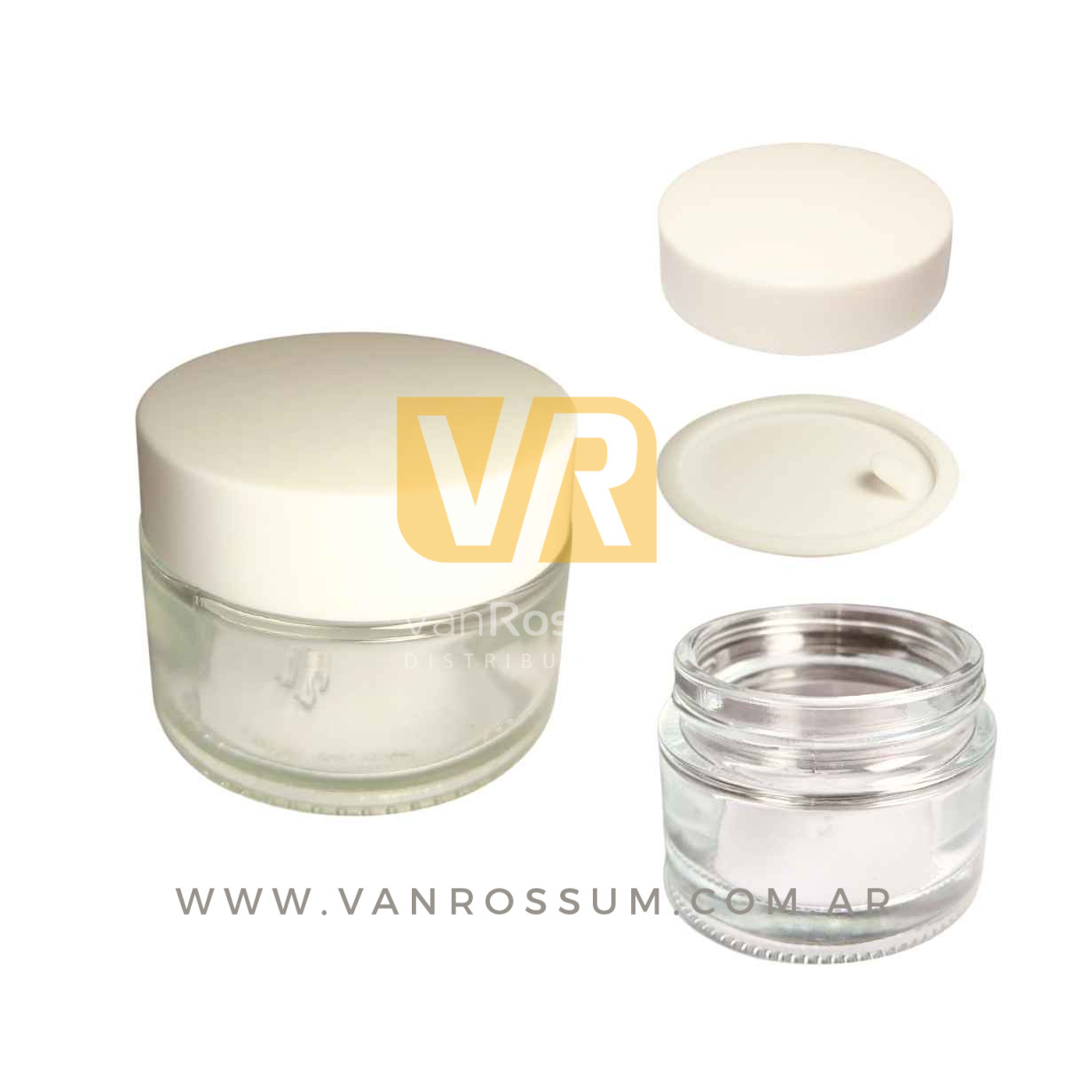 POTE RECTO TRANSPARENTE 50 ML. (DE VIDRIO C/ TAPA BLANCA)