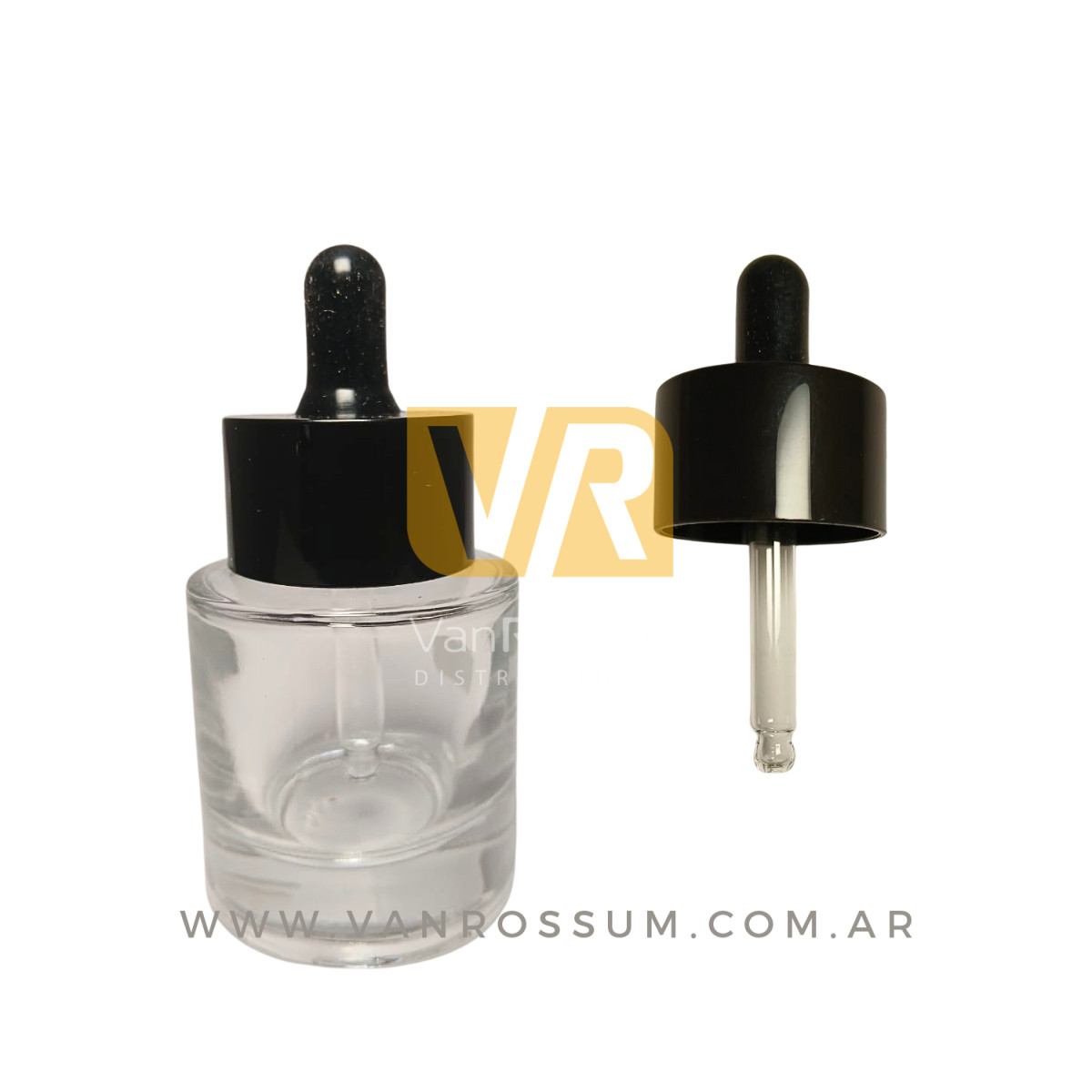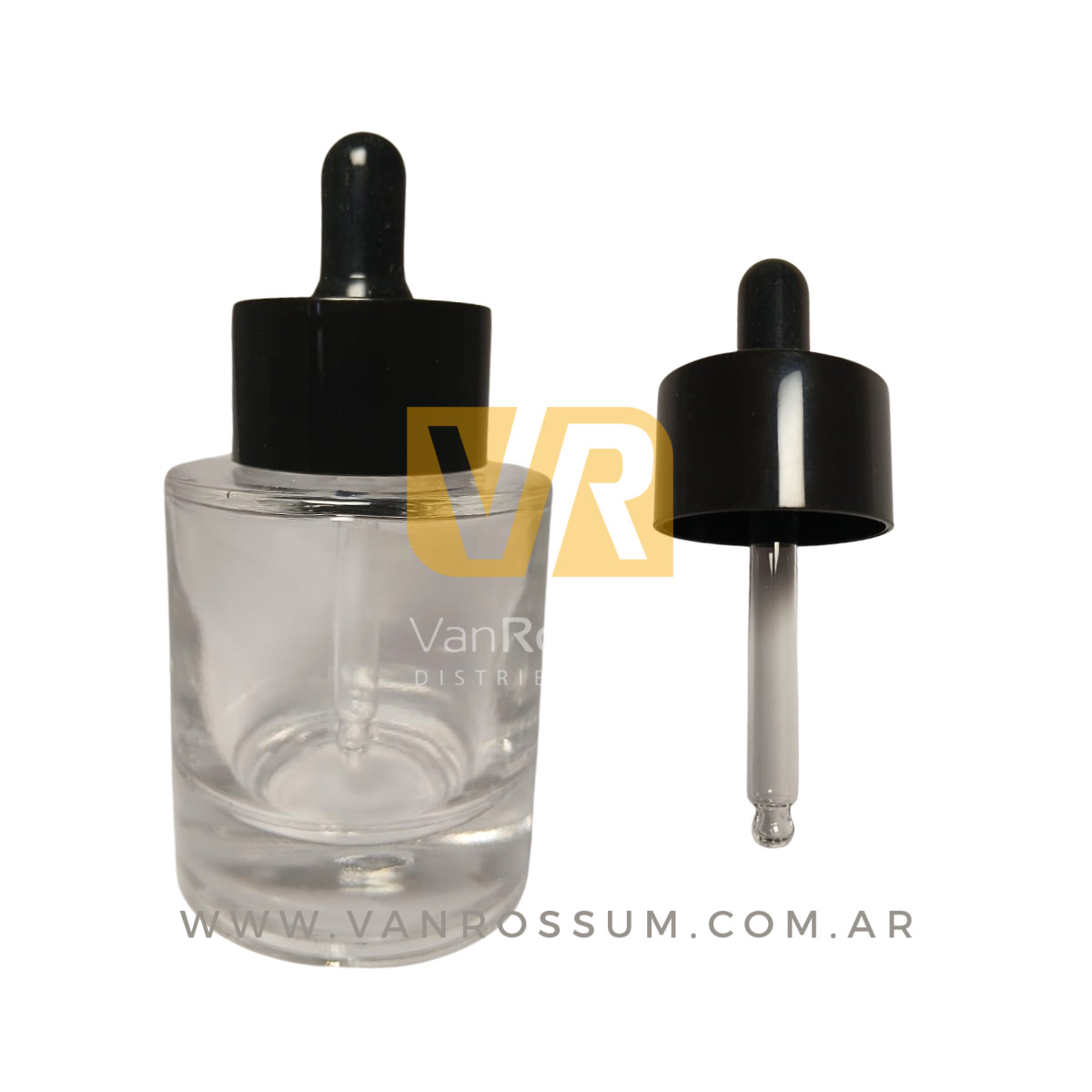 POTE REDONDO TRANSPARENTE 30ML (DE VIDRIO CON GOTERO NEGRO)
