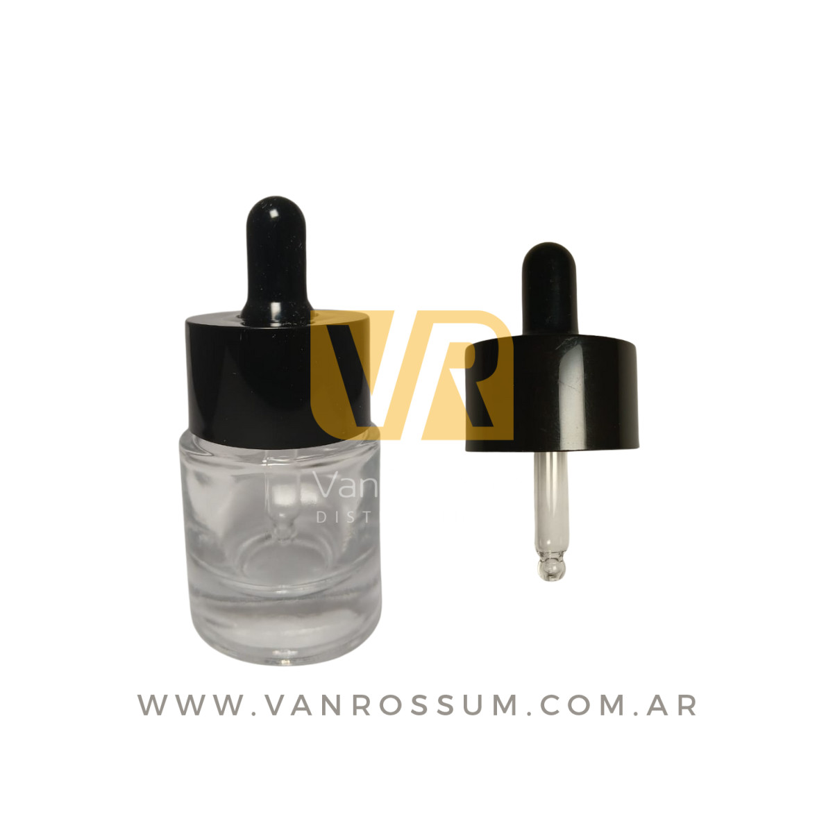 POTE REDONDO TRANSPARENTE 15ML (DE VIDRIO CON GOTERO NEGRO)